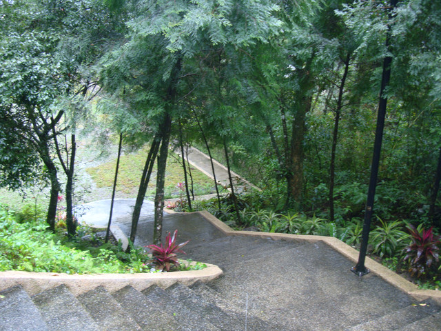 從校門進入順著階梯穿越綠色樹林而下,可以預見待會的校園景致一定迷人。