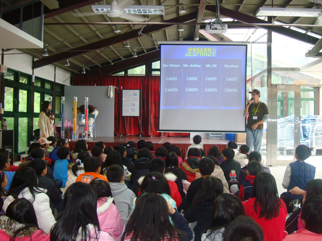 老師在做最後的提醒,外籍的講英語,本土的當翻譯。