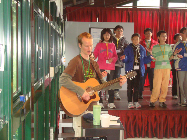 接著是唱唱跳跳時間,魔法營的外籍老師很厲害,自己就會彈吉他、帶動氣氛。