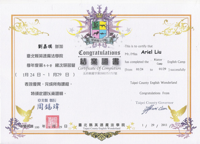 這個時候英速魔法學院也開始頒發參加同學的結業證書,大女兒開心地領取,只是臺北縣已升格,
