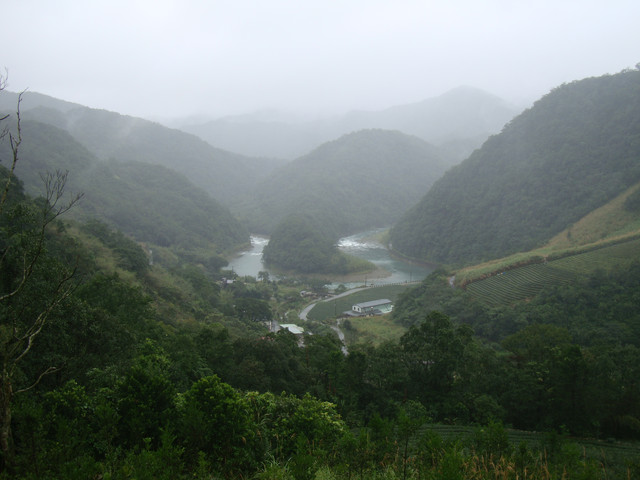 看到一幅青山綠水美景,趕緊下車頂著寒風小雨拍照。