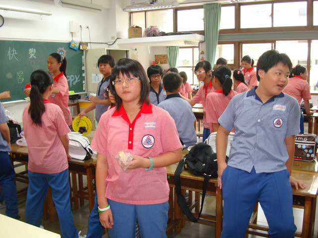 咦!坐在大女兒前面的是五班游泳隊好友:周宜柔、游巧慧。