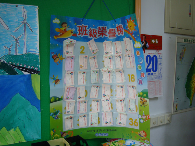 大女兒她們班導師李含芳老師是位負責任的好老師,引領全班同學注重榮譽,光看得獎錦旗就知道。