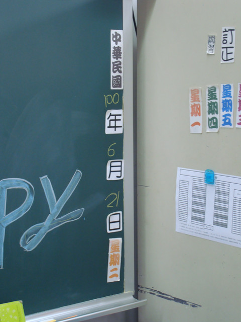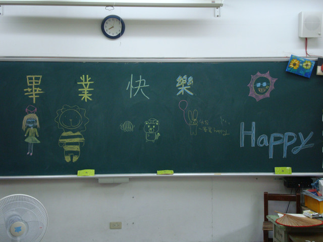 教室的大黑板,書寫的「畢業快樂」四個大字,真的一轉眼今天這些六年級小朋友就要畢業了。
