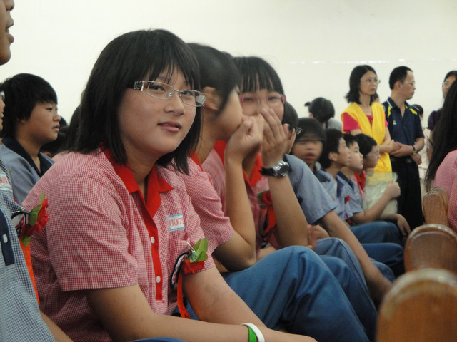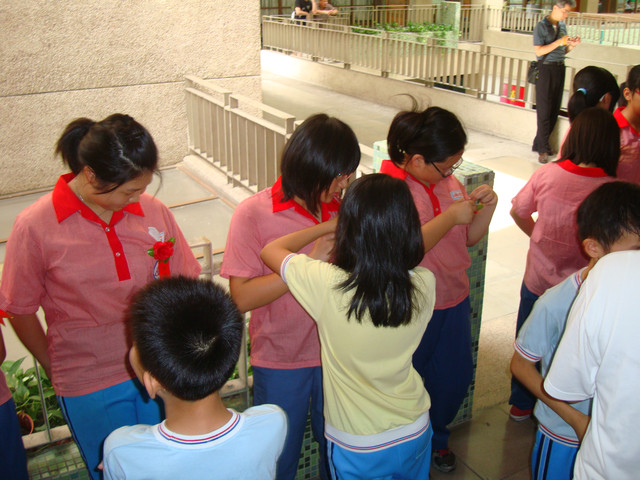 畢業典禮的時刻即將到來,首先是由五年級的學弟妹,來為六年級的畢業生佩戴胸花。