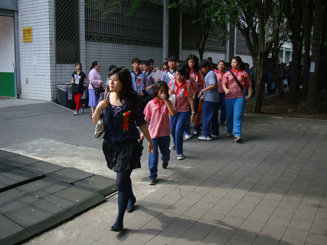 接著就準備出發步行到學校旁邊的畢業典禮會場,跟著老師走就對了。