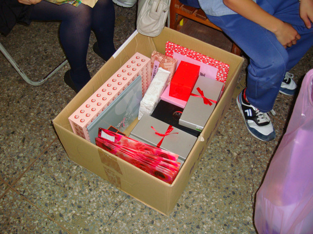 這是大女兒她們班畢業生的獲獎獎品,待會就在典禮中一一頒發。
