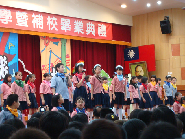 再來是校長頒發畢業證書,由六年級及補校的代表上台接受證書,補校的阿嬤精神令人感佩。