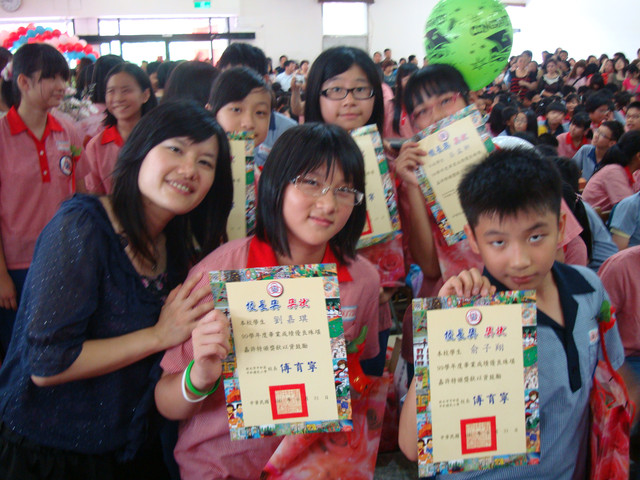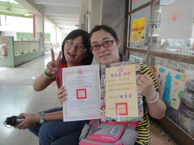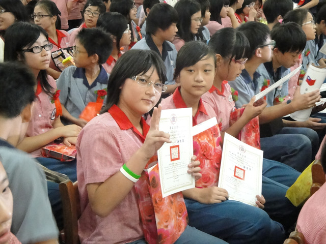 爸爸我想當年國小畢業是什麼獎都沒有的,的確大女兒妳是贏過爸爸我啦!