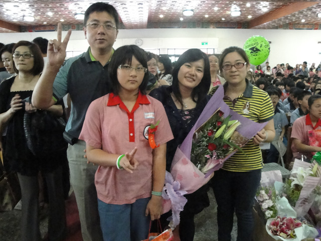大女兒得到校長獎,當父母的是一定要分享她這份榮耀的,於是拍張合照,這是一定要的。
