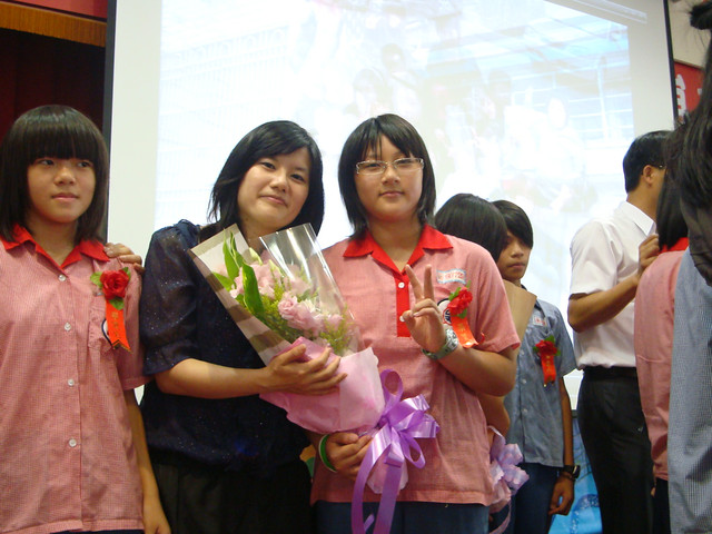 歡送退休校長當然就有獻花、合影及發表感言的橋段,都在影片中,哈哈。