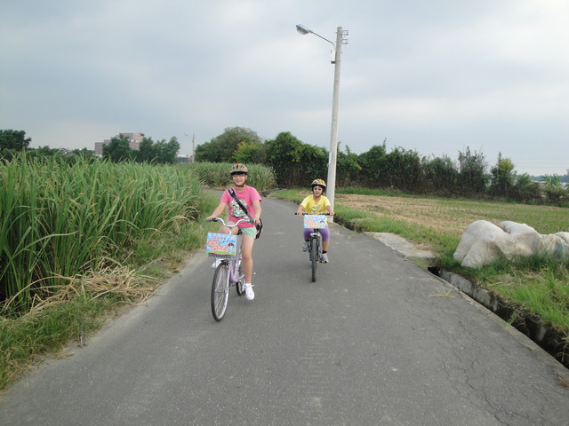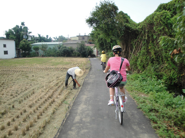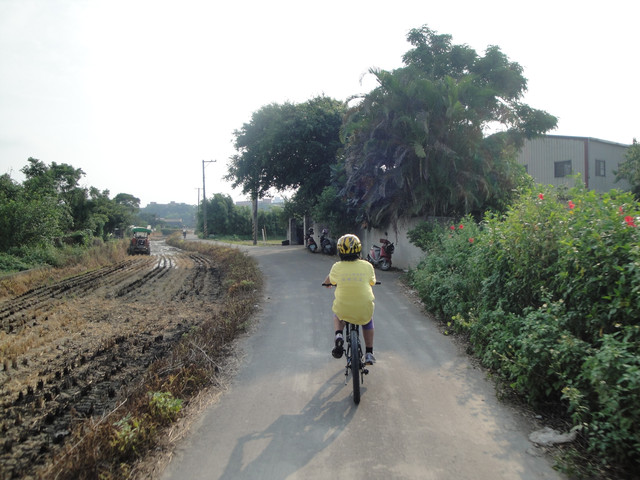 在這田間小路上,遇到同是來參加體驗騎乘活動的車友,他們應該是繞一圈騎完要準備回霄裡國小。