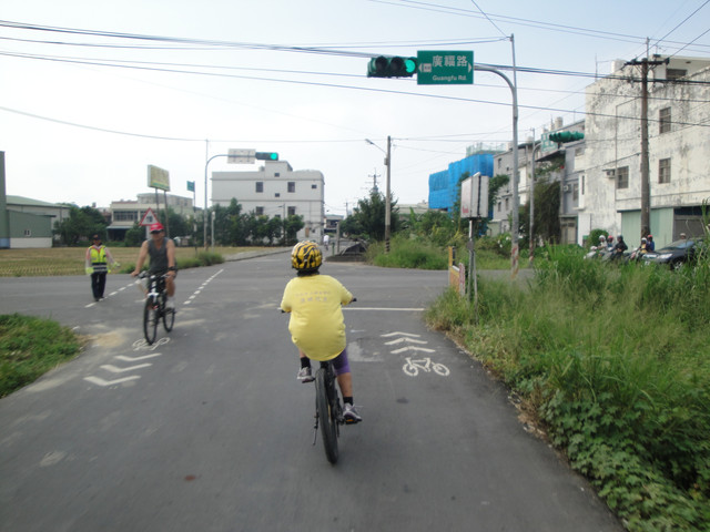 整條路線經過比較危險、人車往來頻仍的路口,就屬這個廣福路口,今天有義警幫忙維護安全。