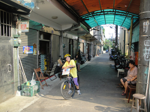 我這穿拖鞋騎著單車的模樣,還真是有點怪怪的。