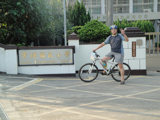 爸爸我也來跟霄裡國小拍張到此一遊的相片,凡騎過必要留下痕跡。