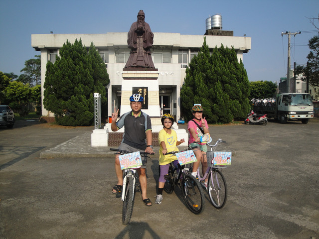 在霄裡國小的孔夫子像前拍張合照後,將單車歸還就準備離開這裡啦。