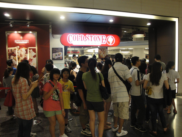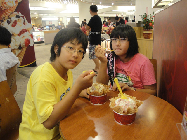 回台北為了給這兩個小朋友獎勵,我們先不回中和,去板橋車站的環球買COLD STONE。